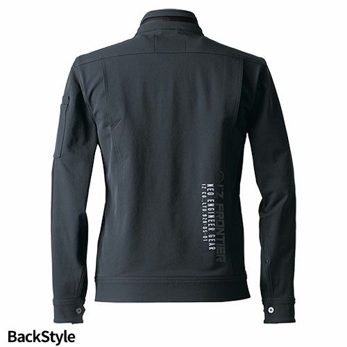 高い独創性が生み出す次世代ユニフォームの進化のかたち。フューチャーデザインとスポーティーファンクションの融合が新たなワークマインドを刺激する。 ●ポリエステル100%ながら独特のギラつきを抑えマットな表面感を実現し、高級感のあるナイロンライクな風合いを発揮。従来のポリエステルにない独創的な素材感を実現しました。●そのルックスはワークのみならずスポーツやアウトドア等、様々なシーンに対応可能です。●表側はシンプルでシャープなルックスを表現しつつ、裏側は膨らみを持たせた糸を使用する事によりコットンライクで柔らかな着心地を実現する二重織構造素材を採用。●目付145g/m2の軽量素材を使用。現代のワークシーンに求められる軽量感を実現し着用時の負担を軽減いたします。●しなやかなクリンプ形成による特殊構造加工糸によりポリウレタンにない耐久性を発揮。●伸長率タテ約18%・ヨコ約19%、伸長回復率(1時間後)タテ約86%・ヨコ約82%の適度な全方向ストレッチ性能を有し、ストレスのない快適な動き易さと、安定感のあるスタイリッシュなスタイルキープを実現します。●軽量感のある素材ながらも一般基準をクリアする引裂き強さ(タテ約15N・ヨコ約24N)を実現。抗ピリング性能等その他各項目も高い数値を測定した高堅牢性モデル。●ハイレベルな導電糸を組み込み高い帯電防止性能を発揮。素材自体はJIS T8118にも適合します。●シーンを選ばない先進的なシャープなデザインに、アイズフロンティアならではの厳選されたレタリングプリントをプラス。さり気ないリッチ感を演出します。●高級感のある止水ファスナーやドット釦等に国産YKK社製を使用。細部にまで拘りを追求しています。