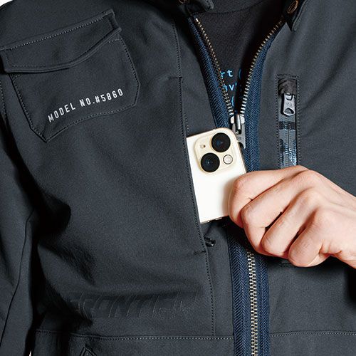 国産のセミダル4WAYストレッチ素材を使用し着心地もしなやかJIS-T-8118規格にも適応しており幅広いワークシーンで活躍 ●多様なツールが携帯できる抜群の収納力を持ちつつも見た目スタイリッシュ●製品制電JIS-T-8118適合品●レディス対応も充実、ダイバーシティモデル●アクティブ&シャープな印象の立ち衿仕様●高品質の日本製4WAYストレッチ素材