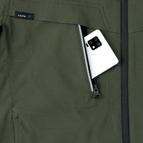 実用性のある大型マルチポケットを採用、ハードな現場もしっかり想定 驚異の140%超縦横ストレッチとソフトなスウェット調の風合いながら物性にも配慮したワークCVC素材を使っています。