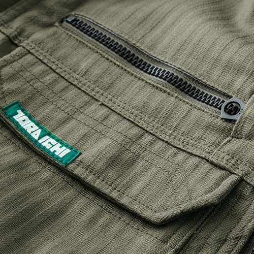 タフな世界を切り開く孤高のワーカーへ。優れた堅牢性と妥協なき機能美を身に纏い、突き進め、飽くなき己の信念のままに。 ●近年ニーズ沸騰のストレッチナイロン素材においてハードワーク対応のハイスペックモデル●他を凌駕する堅牢性に優れた本格派のマルチ機能を誇るワーキングウェア素材を採用●細デニールのナイロン糸を高密度、且つ二重に織り込む事によりタフでボリューム感●溢れる素材構造を形成。高次元の表面摩耗強度を誇りながら生地裏面のパイル構造が優しい肌触りを実現します。●表面強度のみならず、一般基準を大きく凌ぐタテ約48N、ヨコ約92Nを誇る屈強の引裂き強さを有します。●伸長率タテ約46%・ヨコ約32%、伸長回復率(1時間後)タテ約92%・ヨコ約81%の優れた全方向ストレッチ性能を有し、ストレスのない快適な動き易さと、安定感のあるスタイルキープを実現します。●MA-1+ライダースMIXをアイズ的独自解釈でアレンジしたミクスチャーデザイン。商品コンセプトである強度を反映したワイルドスタイリッシュモデルに仕上げました(ジャケットはルーズシルエットでワンサイズ大きめ)。●洗練された3Dカッティングでスタイリッシュなスタイリングと動き易さを両立。●金属ファスナー、ドット釦等は国産YKK社製を使用。細部にまで品質に拘っています。