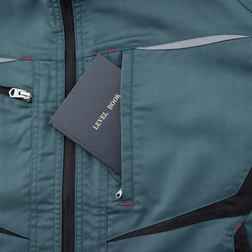 配色デザインのエコ素材2WAYストレッチ 再生ポリエステル素材のSDGsに貢献する2WAYストレッチを使用。配色の効いたスタイリッシュなデザインでありながら、胸ポケット、袖、後裾に反射テープを使用し、安全性にも優れたワークウェアです。