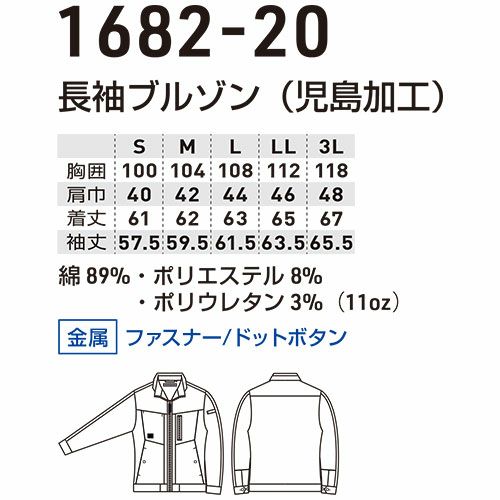 作業服 デニム 桑和 SOWA G.GROUND 長袖ブルゾン 1682-20 作業着 通年 秋冬 ストレッチ 吸汗性 製品洗い 上着 デニム作業服 デニム作業着 ブルゾン ジャケット ワークウェア 仕事 土木 工事 現場