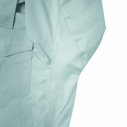 オールシーズン対応可能な綿リッチなストレッチ素材 綿高混率のストレッチCVC素材を立体裁断することで可能にしたスリムでも動きやすいスタイリッシュなワーキングウェア
