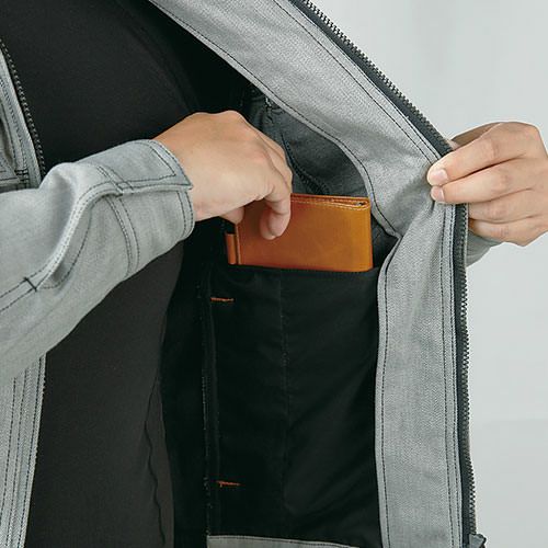 伸縮性能を強化したハイパワー糸使用ストレッチモデル 高機能のストレッチ糸を使用し、歴代USDストレッチデニムシリーズの中で最高レベルの伸縮率を実現。右胸に配置された大容量大型ファスナーポケットで収納性が大幅にアップ。アーム廻りも程よいフィット感のすっきりシルエットに仕上げてあり、より洗練されたスタイリッシュシルエットへ。