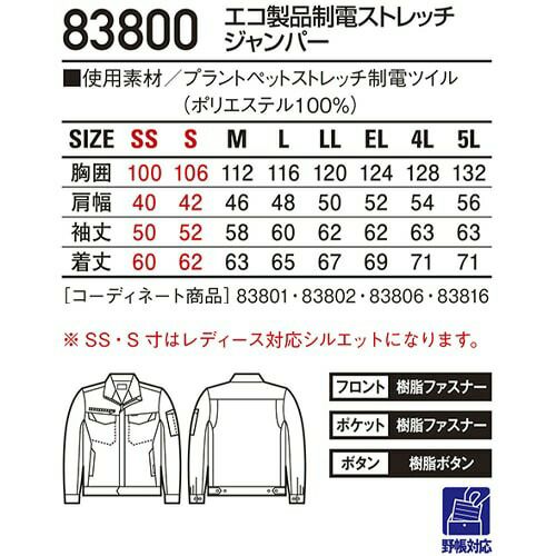 作業服 ジャンパー 自重堂 エコ製品制電ストレッチジャンパー 83800 作業着 通年 秋冬作業着 作業服 ジャンパー 長袖 おしゃれ かっこいい 企業 法人 ワーク 作業 ワークユニフォーム ワークウェア 長袖ブルゾン ユニフォーム