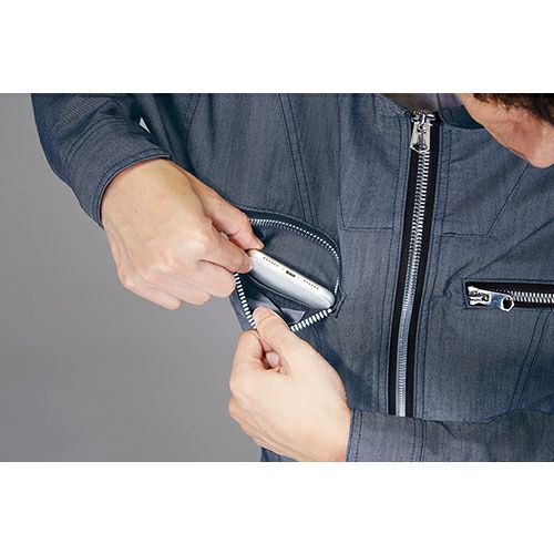 デニム調のストレッチ素材を使用しています。ライダースジャケットテイストのデザインに仕上げたシリーズです。