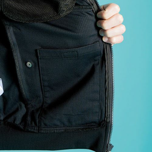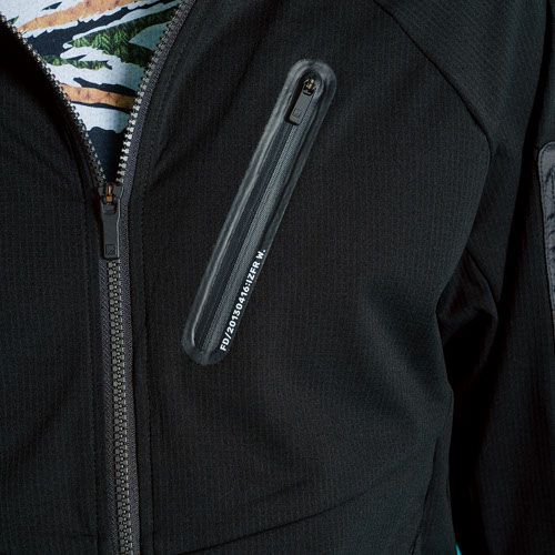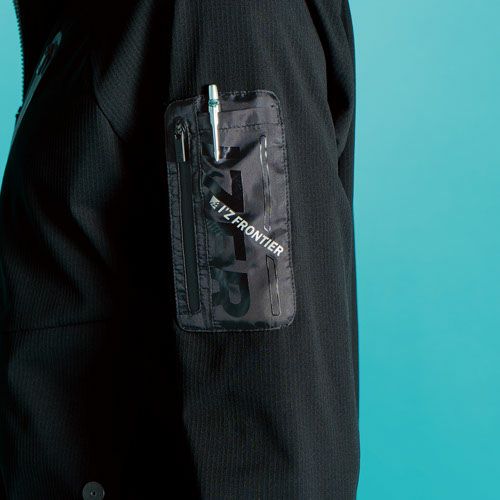 小物が入るファスナー付き左袖ペンポケット