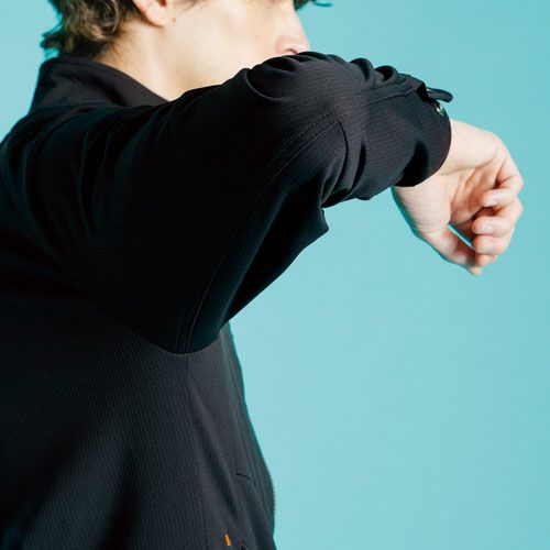 ・しなやかなクリンプ形成による特殊構造加工糸T400を効果的に編み込みポリウレタンにない耐久性を発揮。伸長率タテ約19%・ヨコ約25%、伸長回復率(1時間後)約95%の快適な全方向ストレッチ性能を有し、ストレスのない動き易さ、ハリコシ感のある快適な着心地、安定感のあるスタイリッシュなスタイルキープをそれぞれ実現します。・ニット素材特有の動きやすさに加え、抗ピリング性能4.5級、抗スナッグ性能5級、破裂強さ800kpaを誇る、ニット素材の中では屈強の生地強度も合わせ持ちます(ジャケットとして問題のない破裂強さの数値は400kpa)。