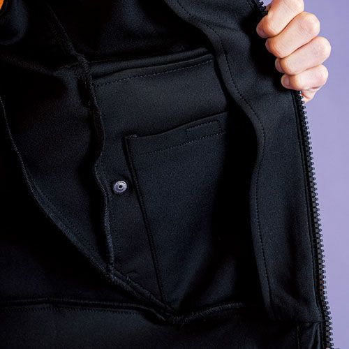 防風素材をボンディングした3層裏トリコットソフトシェルジャケット伸縮性のあるストレッチリップストップを使用。