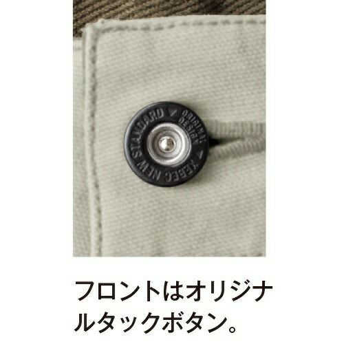 根強い人気のストレッチワークウェア 伸縮性のあるストレッチサージに、防汚加工や撥水撥油加工、火熱に強い難溶融加工など多様な機能性を併せ持つ高機能ワークウェア。動きやすいプリーツロンを採用した初期モデルで、その効果を広めた功労者的存在であり、今も根強い人気を誇っています。