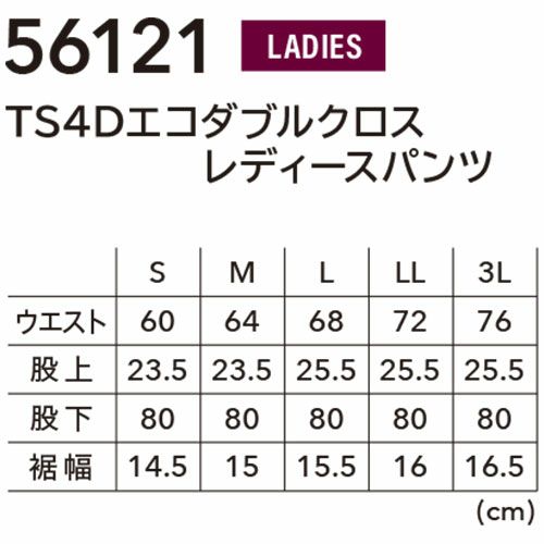 作業服 レディース パンツ 藤和 TS Design TS4Dエコダブルクロスレディースパンツ 56121 作業着 通年 秋冬作業着 作業服 レディースパンツ