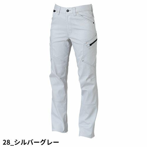 経糸は綿、緯糸は伸びるポリエステル糸T400をポリエステルで包み込んだ二重構造糸を使用した高品質の日本製ハイブリッド素材。これによりポリウレタンを使うことなくストレッチ性を実現させ、ポリエステル特有のギラつきを抑え素材感を出させている。