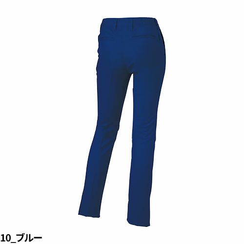 スリムシルエットのレディーススラックス。ストレッチ素材と脇ゴムで快適なはき心地。