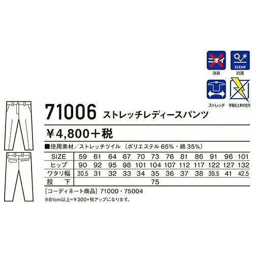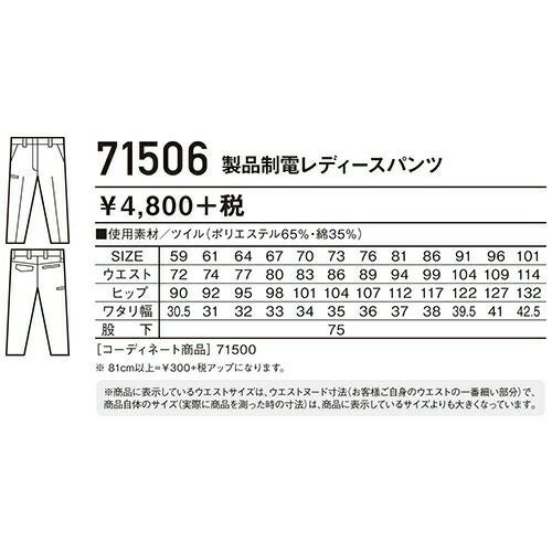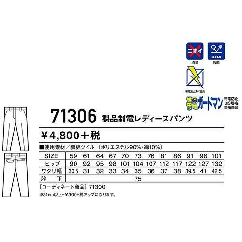他の画像を見る 作業服 レディース パンツ 自重堂 製品制電レディースパンツ 71506 作業着 通年 秋冬 レディースパンツ 特別価格 ¥ 3,168 税込 〜 特別価格 ¥ 税込 丈夫でソフトな着心地のT/C素材 あらゆる現場に対応する帯電防止 JIS T8118 適合ウェア 詳細を見る お気に入りに登録する