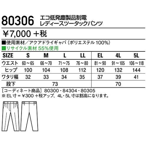 他の画像を見る 自重堂 作業服 80306 ツータックパンツ 秋冬 レディース 作業着 ボトムス ワークウエア 通年 レディースパンツ 特別価格 ¥ 4,444 税込 〜 特別価格 ¥ 税込 低発塵性を素材と縫製の両面から実現。 生地の裁ち目を隠すために巻き縫いやカバーリングなどの工夫を施し、 わずかなチリやホコリが仕事に支障をきたすデリケートな現場にこそ 必要とされるウエアを開発しました。 詳細を見る お気に入りに登録する