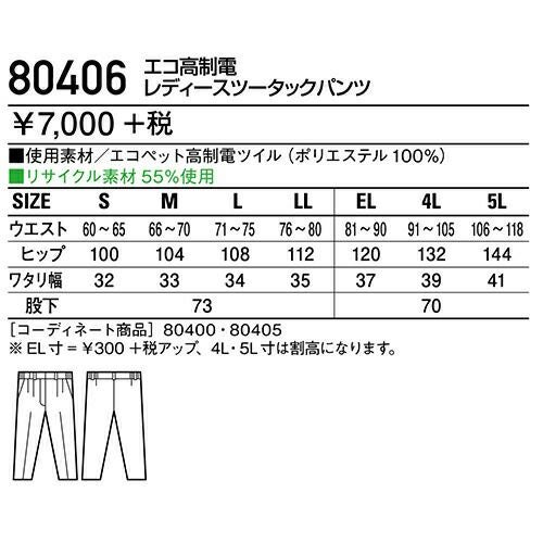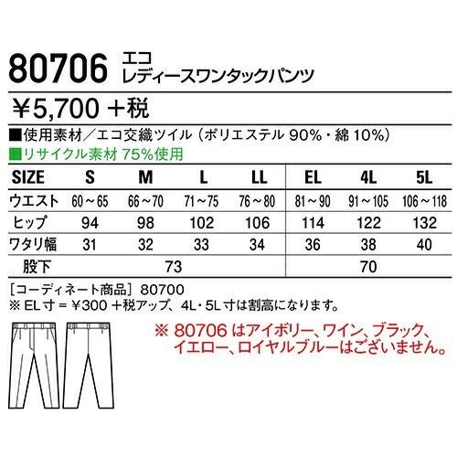 他の画像を見る 作業服 レディース パンツ 大川被服 kansai uniform カンサイユニフォーム K80605 レディーススラックス(脇ゴム入り) 80605 作業着 通年 秋冬 レディースパンツ 特別価格 ¥ 6,820 税込 〜 特別価格 ¥ 税込 寛斎カラーで、人も企業も元気に。 何年たっても飽きが来ず、年齢を問わずすべての人にマッチする着映えのするカラー長期間着用することで、着る人自身が商品の良さを実感するだけでなく、企業イメージや社内のモチベーションアップも可能にする人気の商品です〔クラレトレーディング 日本製エコ素材使用・エコマーク認定商品〕 詳細を見る お気に入りに登録する