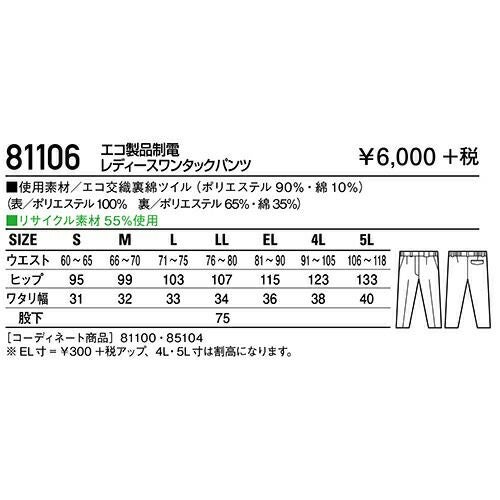 他の画像を見る 自重堂 作業服 82806 レディースパンツ 秋冬 レディース 作業着 ボトムス ワークウエア 通年 特別価格 ¥ 3,861 税込 〜 特別価格 ¥ 税込 帯電防止JIS T8118適合商品。伸縮性に優れたストレッチ素材に防汚加工を施したソフトワーク向けユニフォーム。 ※カラーによって様々な着こなしが楽しめるカラーワーキング になります。※東レ ボディフィールは高いストレッチ性とストレッチバック性で動きやすさを極めるとともに、着用時の圧力(衣服圧)を軽減する快適な生地です。※東レ タップガードは汚れが付着しにくく、付着した汚れが落ちやすい防汚加工を施した生地です。 詳細を見る お気に入りに登録する