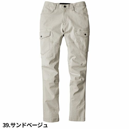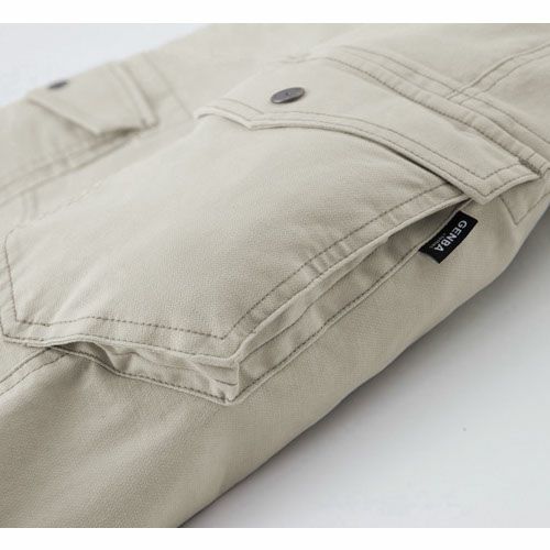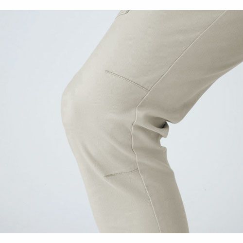洗い加工を施した生地はユーズド感がありながらも、ドビー織の凹凸感でハードな印象を与えます。ポリウレタン糸の入ったのびのびストレッチとやわらかい風合いで着用時の窮屈感を軽減します。