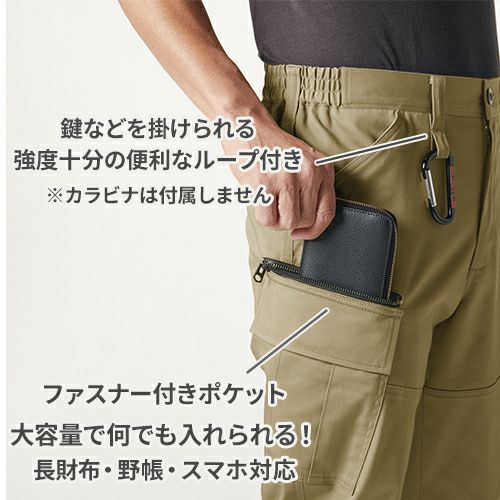 ・サイドに大容量カーゴポケットを配備。スマホや長財布も入ります。