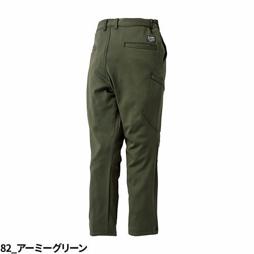 裏地にフリースを使用したボンディング素材で保温性に優れ制電加工にストレッチ性、脇ゴム仕様で履きやすい防寒カーゴパンツ
