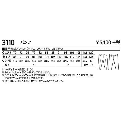 自重堂 TomoeSAKURA 作業服 3110 パンツ 秋冬 メンズ 作業着 腿ポケット無 ボトムス ワークウエア 通年 スラックス 作業ズボン 作業パンツ ワークパンツ ズボン おしゃれ かっこいい オフィス ユニホーム 作業 軽作業 外作業 工場 現場