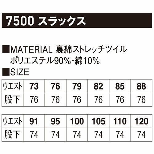 作業服 パンツ スラックス ホシ服装 スラックス 7500 作業着 通年 秋冬 帯電防止 ストレッチ