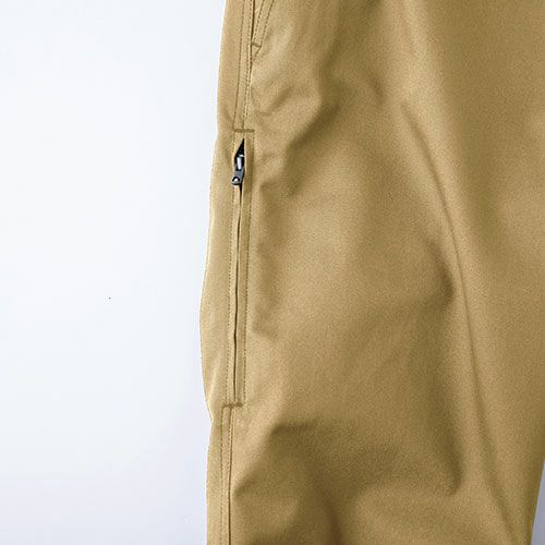 収納力についても定番のポケットの他に、ジャケットでは左胸スラッシュポケット、パンツでは右脇にファスナーポケットを備えています。