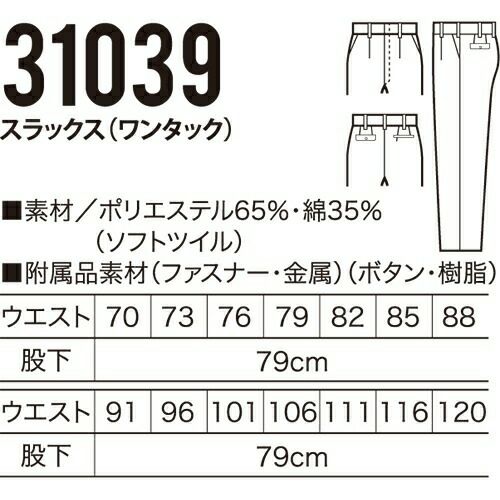 他の画像を見る クロダルマ 31039 スラックス ワンタック 作業着 ボトムス ワークウエア ワークウェア 作業服(秋冬・通年) パンツ・スラックス 腿ポケット無ズボン 作業服 作業ズボン 作業パンツ ワークパンツ ズボン おしゃれ かっこいい オフィス ユニホーム 作業 軽作業 外作業 工場 現場 特別価格 ¥ 3,860 税込 〜 特別価格 ¥ 税込 詳細を見る お気に入りに登録する