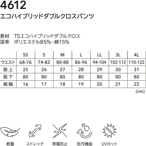 他の画像を見る 作業服 スラックス 藤和 TS Design エコハイブリッドダブルクロスパンツ 4612 作業着 通年 秋冬 男女兼用 カジュアル アウトドア カッコいい おしゃれ シンプル 特別価格 ¥ 4,780 税込 〜 特別価格 ¥ 税込 高密度の裏綿素材を使用した年間着られるワークウェア 詳細を見る お気に入りに登録する