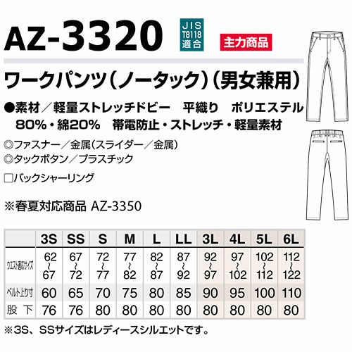 作業服 パンツ スラックス AITOZ アイトス ワークパンツ 男女兼用 AZ-3320 作業着 通年 秋冬 帯電防止 動きやすい 軽量 ストレッチ 作業ズボン 作業パンツ ワークパンツ ズボン おしゃれ かっこいい ボトムス スラックス パンツ メンズ レディース