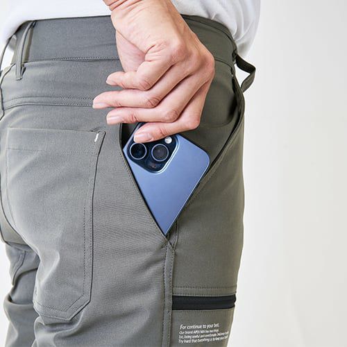 しっかり感ある4WAYストレッチ素材を使用 驚異の140%超縦横ストレッチとソフトなスウェット調の風合いながら物性にも配慮したワークCVC素材を使っています。