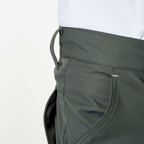 各アイテムごとにしっかり収納できる大型ポケットをマルチに配置 縦130%超の全方向ストレッチと肌面のタイトな大柄ドット構造を活かした軽くて動きやすい高機能独自素材を使っています。4WAYストレッチで軽い二重織となっています。ウエスト内側にはスピンドルコードがあり、どんな腹囲のかたでも着用できる便利な一着です。