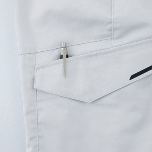 付属が表に出ないスクラッチガード仕様!JIS T8118 制電&ストレッチを兼ね備えたエコ裏綿シリーズ ・ペットボトルなどをリサイクルして作られた再生ポリエステル糸を使用・信頼の日本製ツイル裏綿生地を使用・生地裏側が綿タッチで肌触りが良い・窮屈感を感じさせない適度なストレッチ性・JIS T8118 規格適合の制電性商品・不快なニオイを軽減するデオドラントテープ付き・反射パイピングによる高視認性・ボタン・ファスナーが表に出ないスクラッチガード仕様・レディースサイズ対応商品