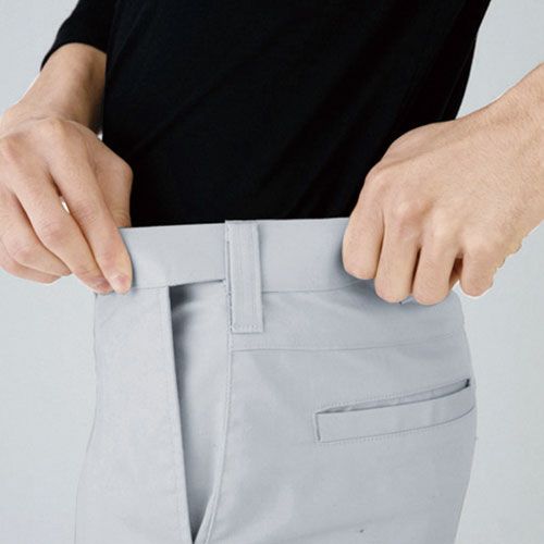 丈夫でなめらかな肌触りが特徴のストレッチ作業着製品洗いの風合いは着心地よく快適なワークシーンが演出するユニセックスシリーズ 丈夫でストレッチ性の優れた男女兼用ユニフォーム肌馴染みがよく縮みを防ぐ製品洗い加工ウエストのフィット感が心地よいバックシャーリング採用