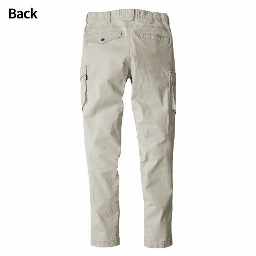 スリムフィットなメインカーゴとゆったりと穿ける適度なリラックスカーゴ2型のパンツ展開と耐久性とストレッチ性に優れるヘビーCVC素材がハードなワークシーンのパフォーマンスを最大化する ・アクティブな着用に対応するストレッチ性と強度を持つコットン高混率肉厚素材・製品洗い加工によりコンフォタブルな着用感と防縮性をアップ・ゆとりのあるウエスト&ヒップ周りから裾にかけゆるやかにシェイプしているテーパードカーゴパンツ・男女ユニセックスの着用に対応