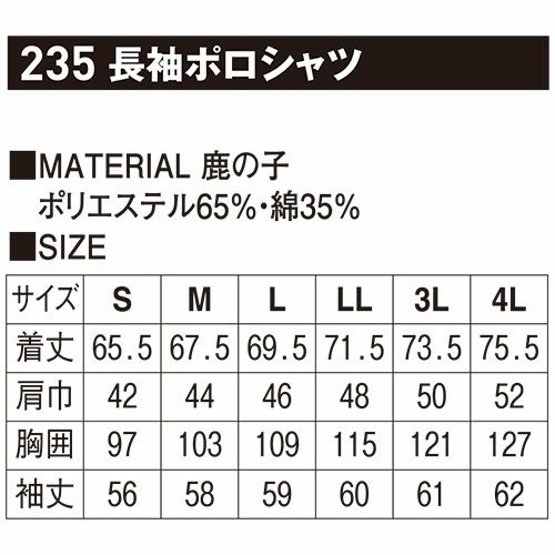 作業服 ポロシャツ 長袖 ホシ服装 長袖鹿の子ポロシャツ 235 作業着 通年 秋冬 吸汗速乾 抗菌防臭 消臭
