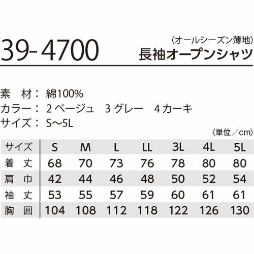 作業服(秋冬・通年) シャツ(長袖)