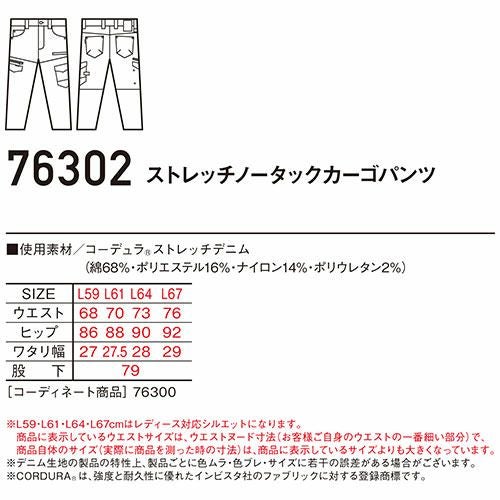 作業服 デニム 自重堂 Z-DRAGON 接触冷感コーデュラストレッチデニムレディースカーゴパンツ 76302 作業着 春夏作業着 作業服 デニムパンツ 春夏