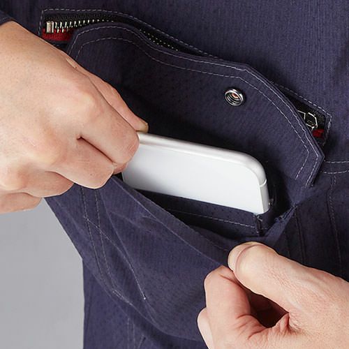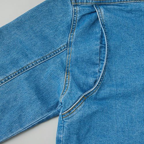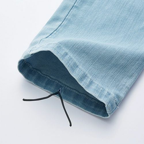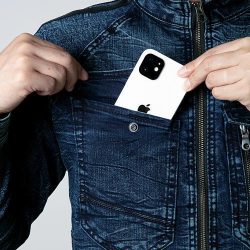肌面繊維の特殊構造により人体の汗を素早く吸収・拡散。従来のデニム素材に比べて快適性がアップしたハイレベルな吸水速乾機能。 紫外線遮蔽率97%/UPF49を誇るセラミック練り込み繊維を肌面に使用し、高い遮熱性能を発揮します。ライトウェイトの素材でありなが ら、基準値タテ約2.5倍、ヨコ約5倍のハイレベルな引裂き強度を併せ持ちます。