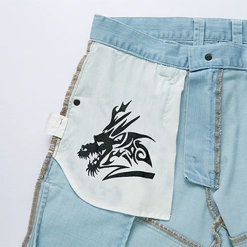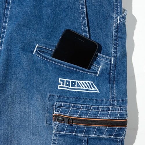 接触冷感で涼感を演出カッコよさと心地よさを両立したユーズド感のあるデニムワークウェア7.3オンス薄手デニム素材に鉱物練り込みナイロン糸を混紡し熱を発散ポリウレタンのストレッチ性も健在 ●膝部分にタック入り●モバイルポケット●右前カラビナループ仕様●左前脇にワンポイントのTORA-プリント●7.3ozの薄手ストレッチデニム●裾ゴム通し対応(※ゴムは付属していません)