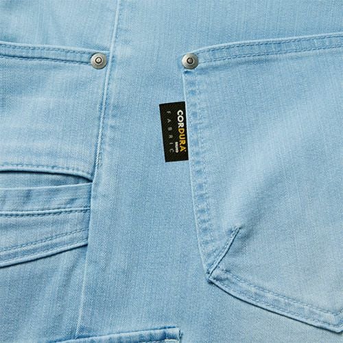 強度と耐久性に優れたコーデュラストレッチデニム素材 デザイン性と機能性を併せ持つハイブリッドモデル・高強度ナイロン66を混紡した織物・オーセンティックなデニムの見た目と手触り・ミリタリーユニフォームから開発された技術・コットン100%のデニムと比べて最低4倍以上の着用耐久性
