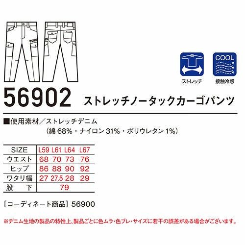 作業服 デニム ジーベック XEBEC 現場服 ストレッチ デニムカーゴパンツ 2816 作業着 春夏 接触冷感 ストレッチ