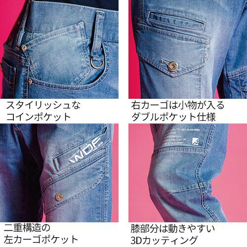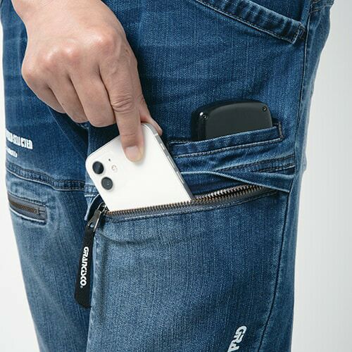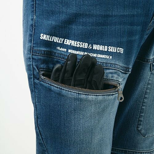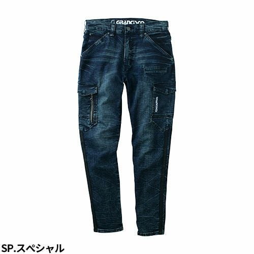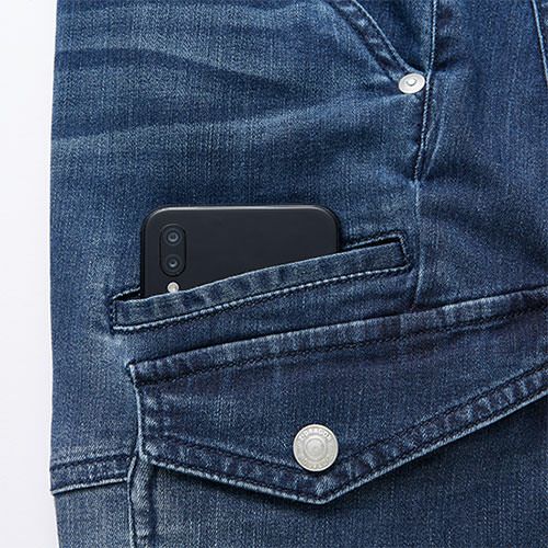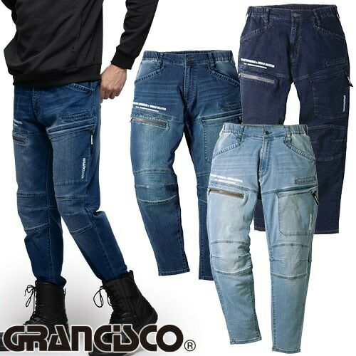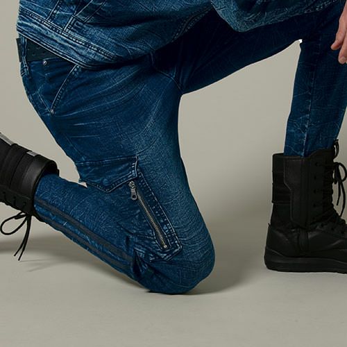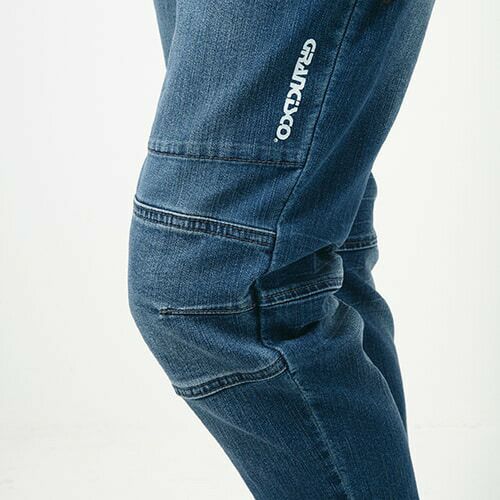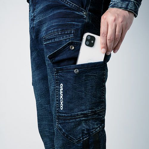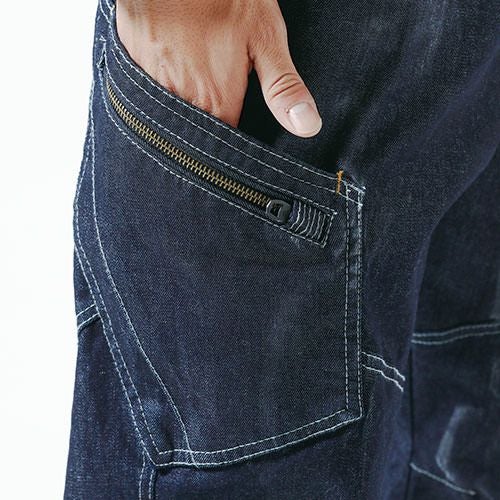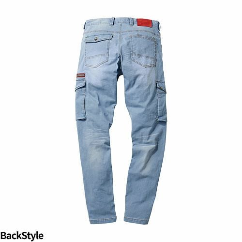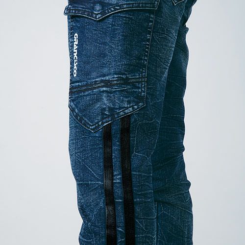 ライン入りスタイリッシュストレッチデニムが新登場! GCA812 デニムカーゴ老舗デニムメーカーでもあるタカヤ商事が得意とする「デニム」コンテンツ。タカヤワークウェア事業部でもその強みを最大限に活かしたデニムワークウェアが満を持して登場。 ジーンズの持つファッション性と機能性ををあわせもった、ワーカーをスタイリッシュに演出するデニムシリーズ。ジーンズメーカーの得意技術のひとつでもある「洗い加工」を手作業でたくみに施し、見た目は綿100%のような表情なのに驚異的な伸縮性。細身に仕立てたシルエットでシャープなスタイルをキープしつつ、そのストレッチ性ではき心地は想像以上の快適さ。GCA712からシルエットをアップデートし、従来の着心地はそのままによりシャープなシルエットに仕上ました。