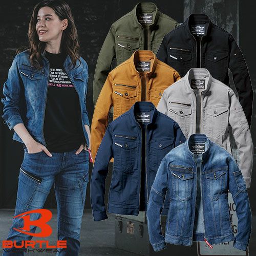 作業服 デニム バートル BURTLE 上下セット 作業着 ストレッチ 5011 5012 春夏 デニムパンツ ズボン デニムジャケット ジャンパー メンズ レディース 接触冷感 セットアップ ブルゾン パンツ 新作 新色 人気 おしゃれ かっこいい