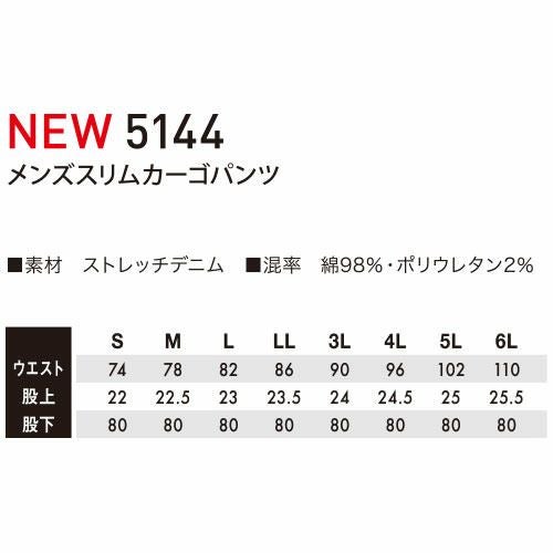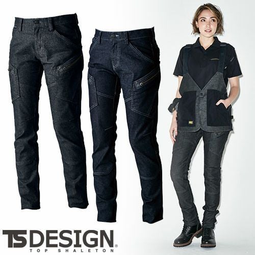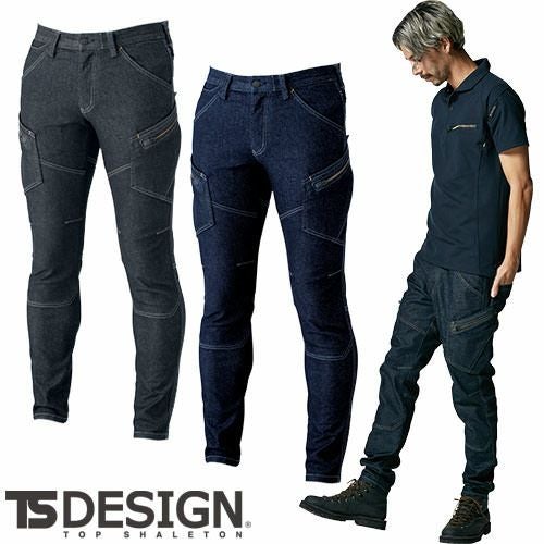 作業服 カーゴパンツ 藤和 TS Design メンズスリムカーゴパンツ 5144 作業着 春夏 ストレッチ 洗い加工 デニム カッコいい おしゃれ