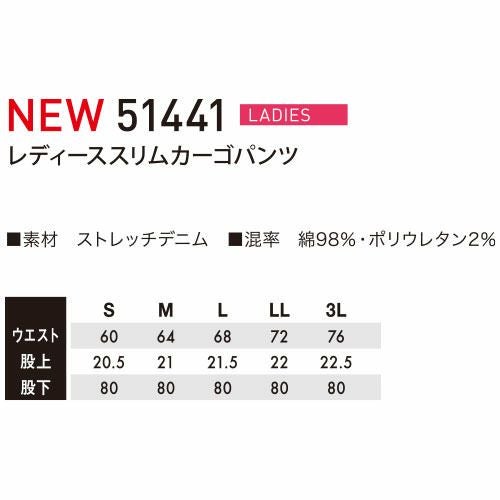 作業服 レディース パンツ 藤和 TS Design レディーススリムカーゴパンツ 51441 作業着 春夏 ストレッチ 洗い加工 デニム カッコいい おしゃれ