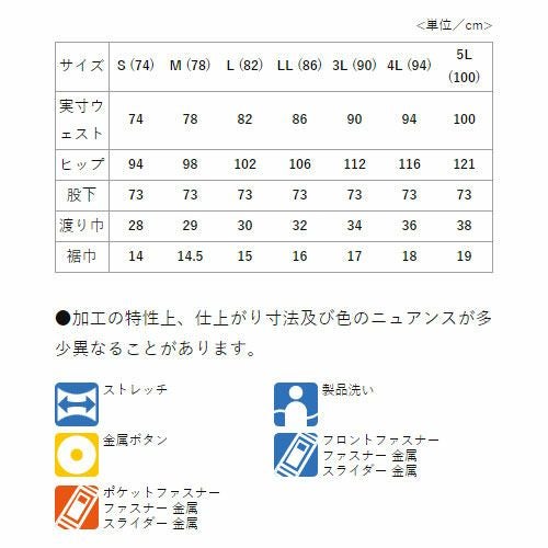 瞬時に熱と汗を吸水排出の「ICEJADE」を使用した接触冷感素材快適に動ける横ストレッチにポケット袋布を2重仕立てで補強したカーゴジョガーパンツ往来のカーゴパンツに比べ少し広めのワタリ寸を設定し、デニムにカラーを3色加えた4色展開は要チェック ●「ICEJADE」を使用●白ビッグロゴを左足前脇にデザイン●ファスナーガレージ採用●フラップに配色ステッチ●横ストレッチ●左脇ファスナーポケットの中にモバイル用仕分けポケット有り●後ろポケットは左右異なるデザイン●右第一ループにカラナビループ仕様※カラナビは附属しません●ポケットは2重仕立てオリジナルネーム●タック釦のキャップは、プラスチック素材(留め具は金属)●ベルトループ(後)補強布付き●スラブ生地で柔らかな風合い、通気性、ストレッチ性
