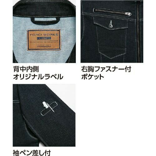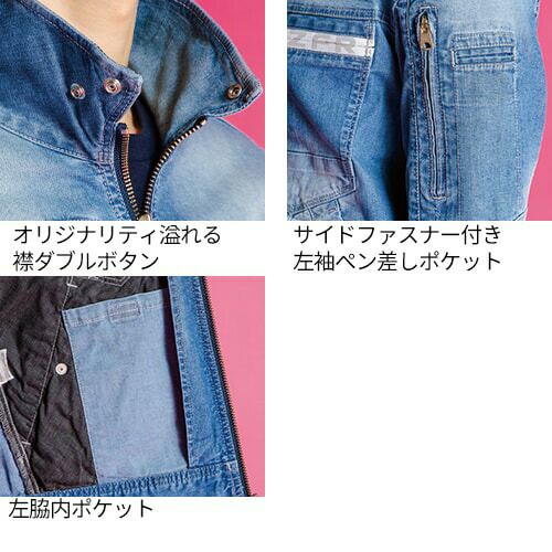 作業服 デニム Asahicho 旭蝶繊維 鎧デニムストレッチジャケット K130 作業着 春夏作業着 作業服 デニムジャケット 春夏