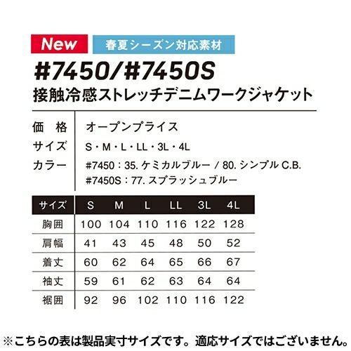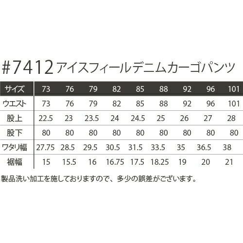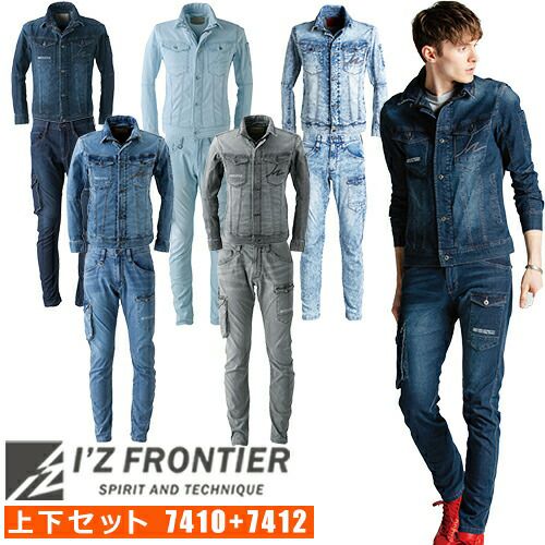 作業服 ブルゾン 接触冷感デニムストレッチ アイスフィールデニム上下セット(#7410+#7412) デニム作業服 作業着 春夏 メンズ レディース セットアップ ブルゾン パンツ 冷感 デニムパンツ ズボン デニムジャケット