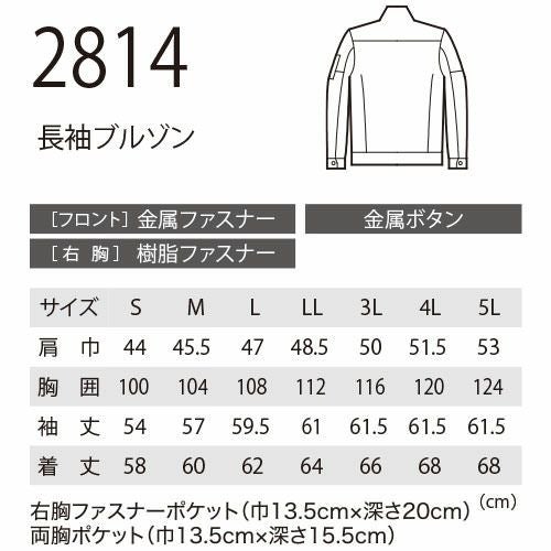 作業服 デニム ジーベック XEBEC 現場服 ストレッチ デニム長袖ブルゾン 2814 作業着 春夏 接触冷感 ストレッチ